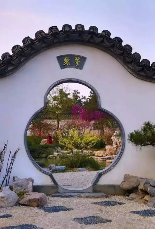 满月门即为园林中最为常见圆形门。圆形门模仿圆月而筑,是月亮崇拜的物化。给人以饱满、活泼和平衡感。