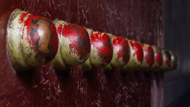 门钉源自墨子所说的“涿弋”(zhuō yì),长二寸,见一寸,即钉入门板一寸左右。当初用来提防敌人用火攻城,所以在涿弋上涂满了泥,起防火作用。门钉的数量和排列,在清朝以前未有规定。清朝则对门钉的使用有一定之规:一个是装饰,一个是代表等级,再一个起加固作用。