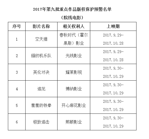 ▲国庆档热映的6部影片,在小长假尚未结束时,盗版资源便已流出(图/国家版权局)