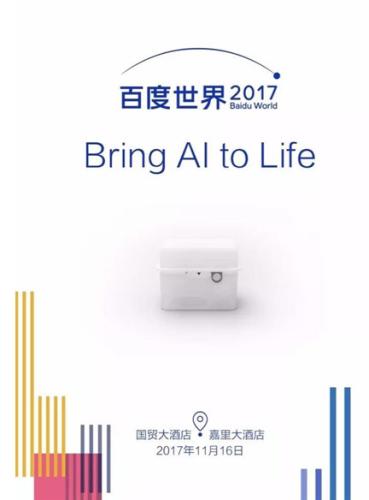 中新网10月31日电 2017年的百度世界大会召开在即,作为中国互联网行业最具影响力的盛会之一,每年百度都在会上宣布其新兴技术或战略级产品。而这次百度官微发布的预热文章上,除了“Bring AI to Life”的标语以及一个半透明的小方盒,并没有其他任何可供参考的信息。加上李彦宏日前在参加活动时,笑称在百度大会上将公布一系列特别令人兴奋的新技术。如此神秘,更加引得外界猜测连连。