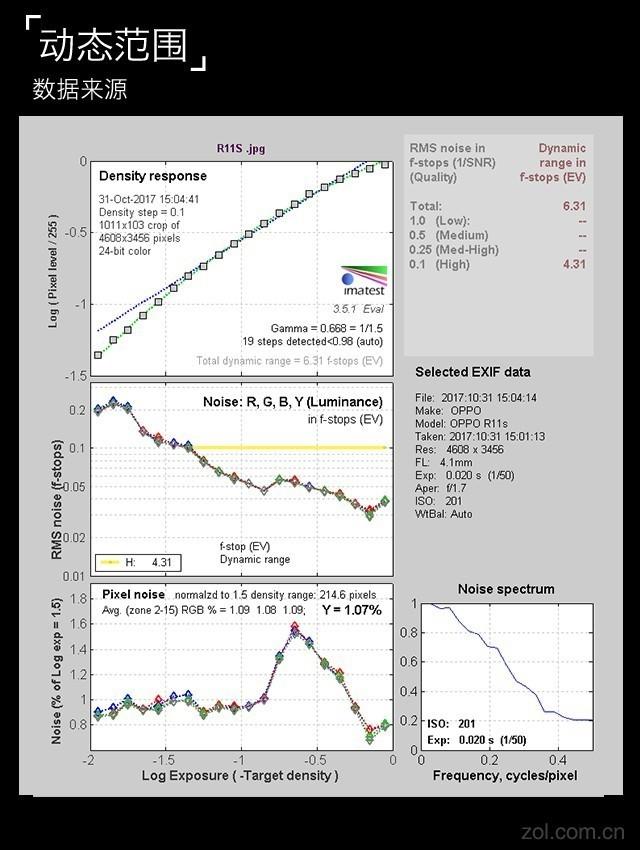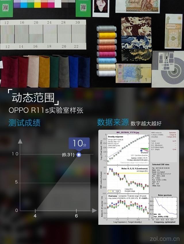 OPPO R11s的动态范围为6.31,已经达到了目前动态范围的顶尖水平。