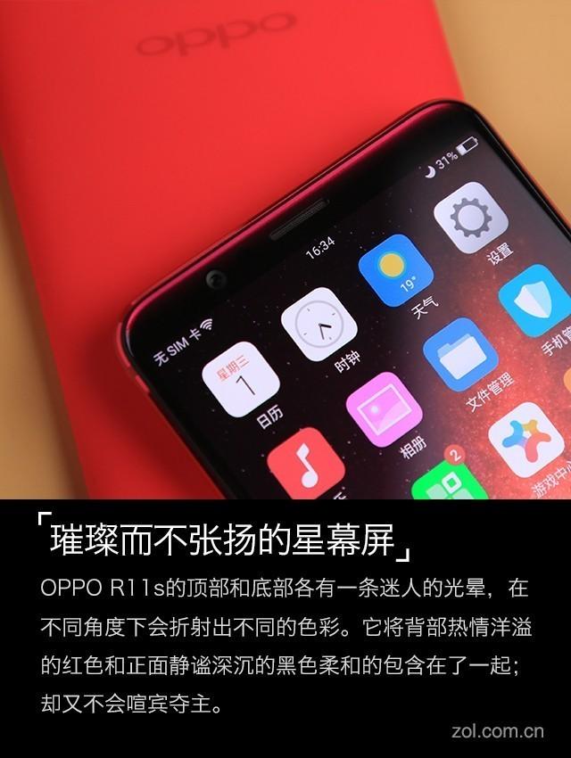 当然这种魅力可能也与R11s首次加入的红色版本有关,过去的红色OPPO R系列手机虽然也有不少,但都是限量版本和联合定制款,而这一次OPPO R11s将红色作为常规颜色加入传统的香槟金和黑色之中,甚至为红色版本做了独特的定制——“星幕屏”。