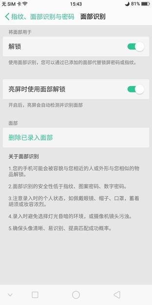目前大热的面部识别功能同样加入在ColorOS 3.2之中。通过摄像头智能采集128个特征点进行快速准确的面部识别。解锁速度最快达到0.08s,无论寒冷冬季还是湿手操作都不在成文手机解锁的困扰。