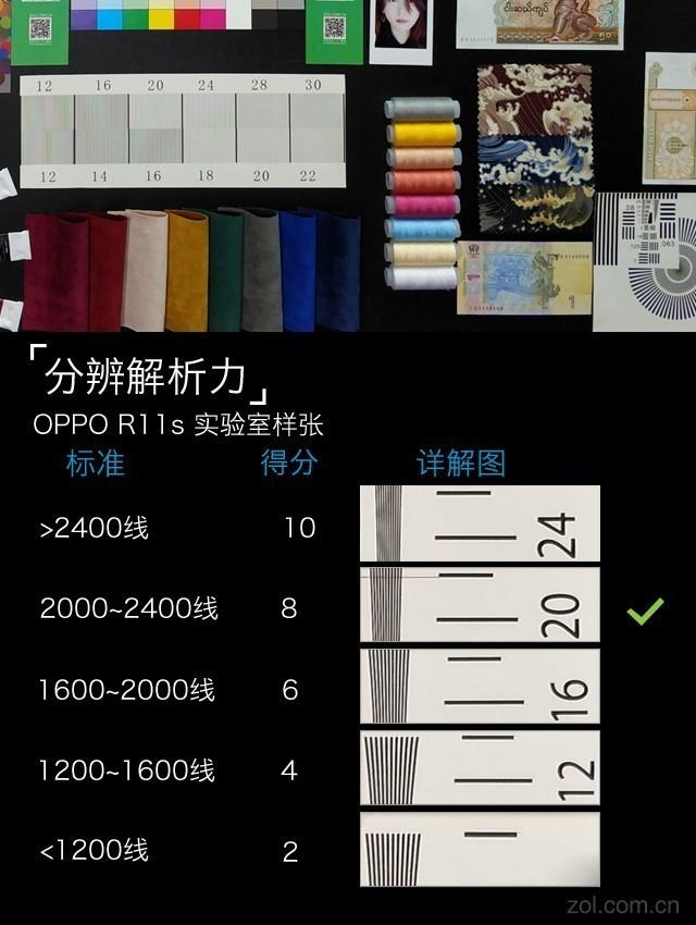 OPPO R11s的解析力相当不错,2200线处依然清晰可见。