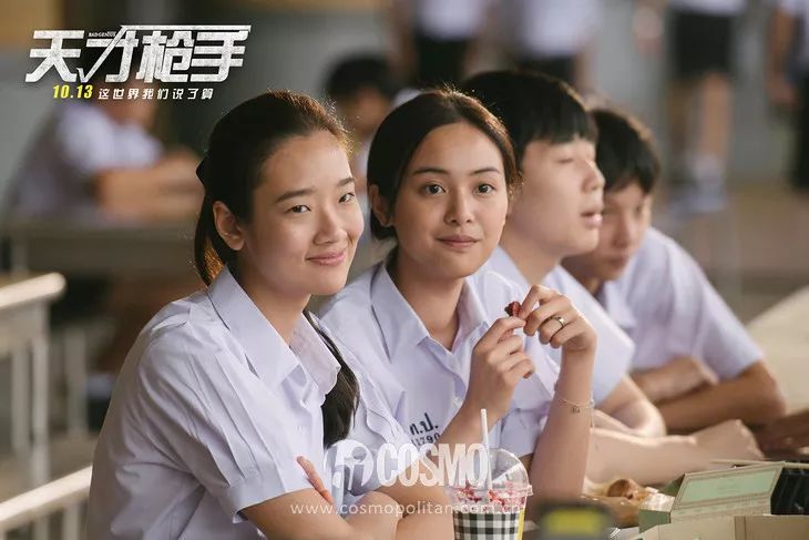 10月13日,国内上映了泰国电影《天才枪手》,一时间成为最热影片。看名字,大家以为会是一个激战片,但实际上是讲考试作弊的剧情,目前豆瓣评分8.3,可以说是非常值得去贡献票房的片子了。而剧中的两位95后女主也顺势爆红,一个是单眼皮国际范儿,另一个是大眼萌妹,风格各异,却都让人喜欢。
