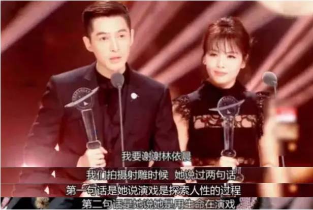 说着容易做起来难,去年金鹰节,视帝胡歌上台领奖时特意感谢了林依晨,让他很早就知道了真正的演员是什么样的。