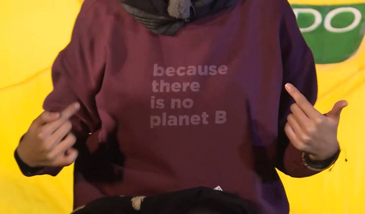 节目中,林依晨思考的问题是城市发展能否与大自然求共存,因为在徒步后期他们简直变身为了“拾荒小分队”,一路不停地捡垃圾。所以轮到她讲感受时,她唰地一下脱掉了外面的衣服,露出了卫衣上的一句话——
