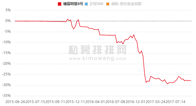 过去两年,私募纷纷试水FOF,穗富投资也发行了一只FOF策略产品——“穗富明星8号”。该产品成立于2015年6月26日,而成立以来净值一路波动向下,期间更是经历过两次断崖式下跌,长期保持在负收益状态。