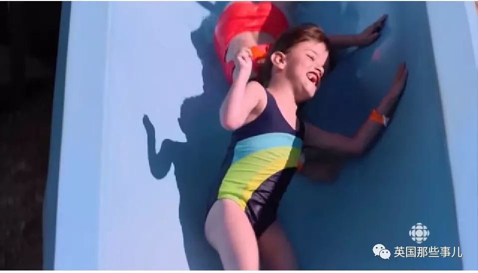 两人第一次玩水滑梯时,刚开始怕得要死,像两只可怜的小狗狗,根本不敢下去。
