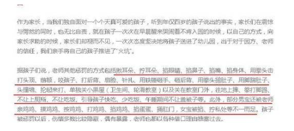 目前当地警方和教委已经介入并展开调查,真相尚不清楚。但耿直哥需要告诉大家的是,这仅仅是过去短短10天里北京的家长集体指控虐童的其中一家幼儿园。还有两家北京的幼儿园也在近期被家长们集体举报了…