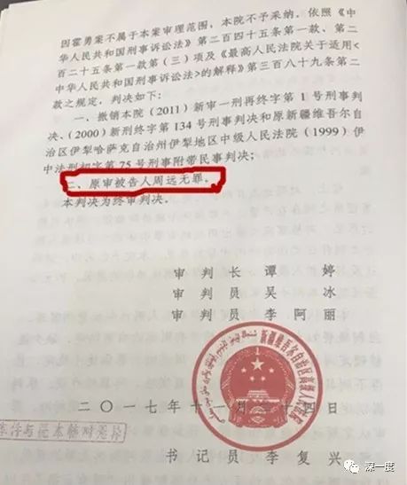 △ 改判周远无罪的判决书最后一页