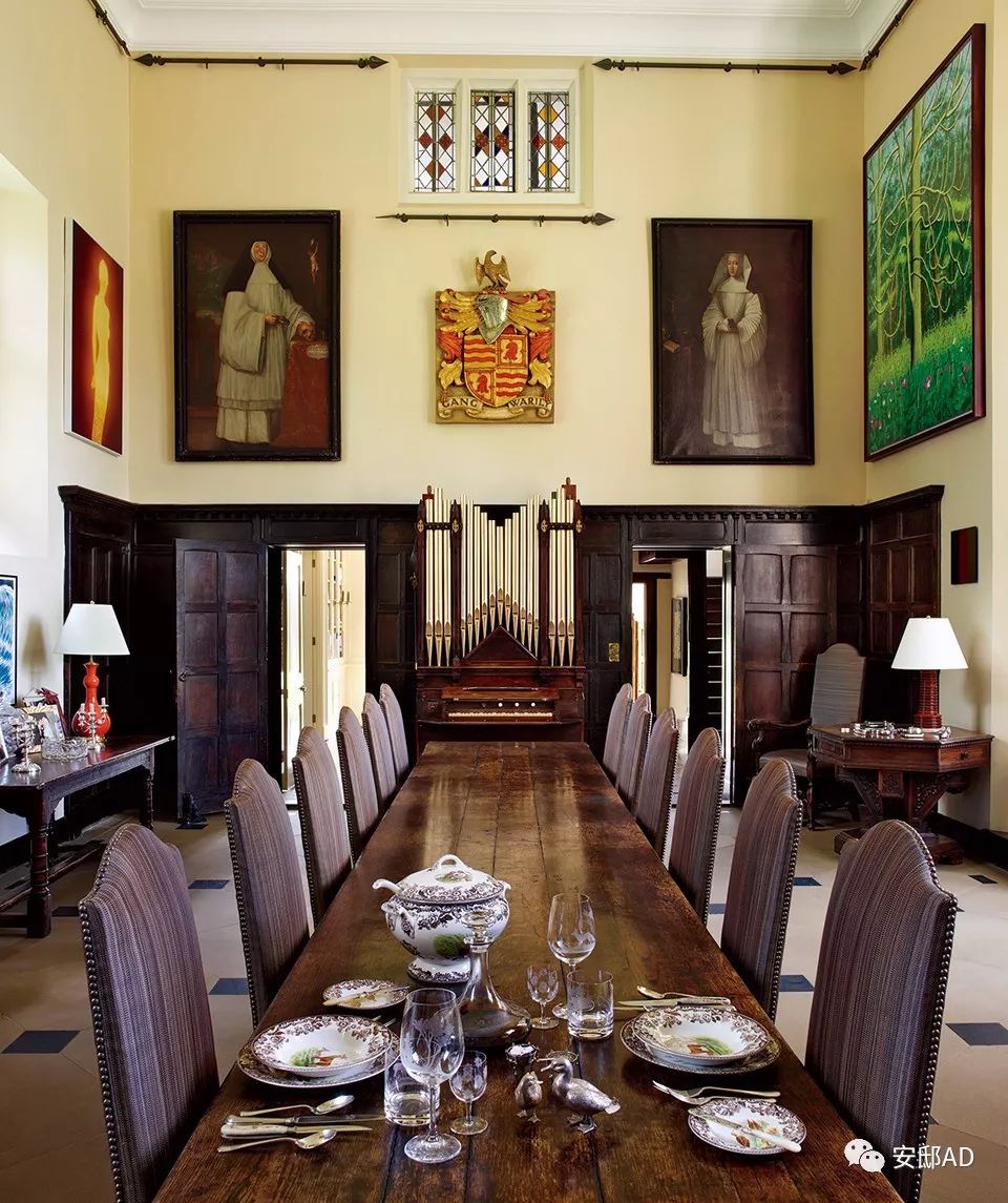 在大堂里,巨大的橡木餐桌上方挂着一对17世纪的修女油画。
