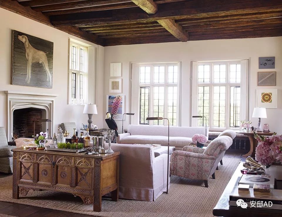 庄园于1574年建成,为纪念名字首字母为H的亨利八世而采用H形造型。房子的名字则是女王伊丽莎白一世所取的。她曾在此下榻,被招待的食物竟然只有冷火腿,就将这里取名为“冷火腿宫”(Coldham Hall)。在伊丽莎白女王整肃时期,这里曾是天主教牧师的避难所,直至今日,房子里还保留着他们当时藏身的空间,只不过那些隐藏在地板下的小屋子现在成了孩子们玩捉迷藏的理想之地。“孩子们还向下扔过拴着吸铁石的绳子,想看看里面是不是藏了什么值钱的东西。”Schiffer说,不过最后一无所获。1605年,这里还是黑火药阴谋分子的秘密聚集地,之后的三个世纪里一直归最初的家族所有。“这里确实历史非常悠久。“Schiffer说。出于对历史的尊重,夫妻两人以一种慢条斯理、深思熟虑的方式来装饰空间。“我们决定慢慢来,”Schiffer说,“每次添置新物件时都经过一番思考。”