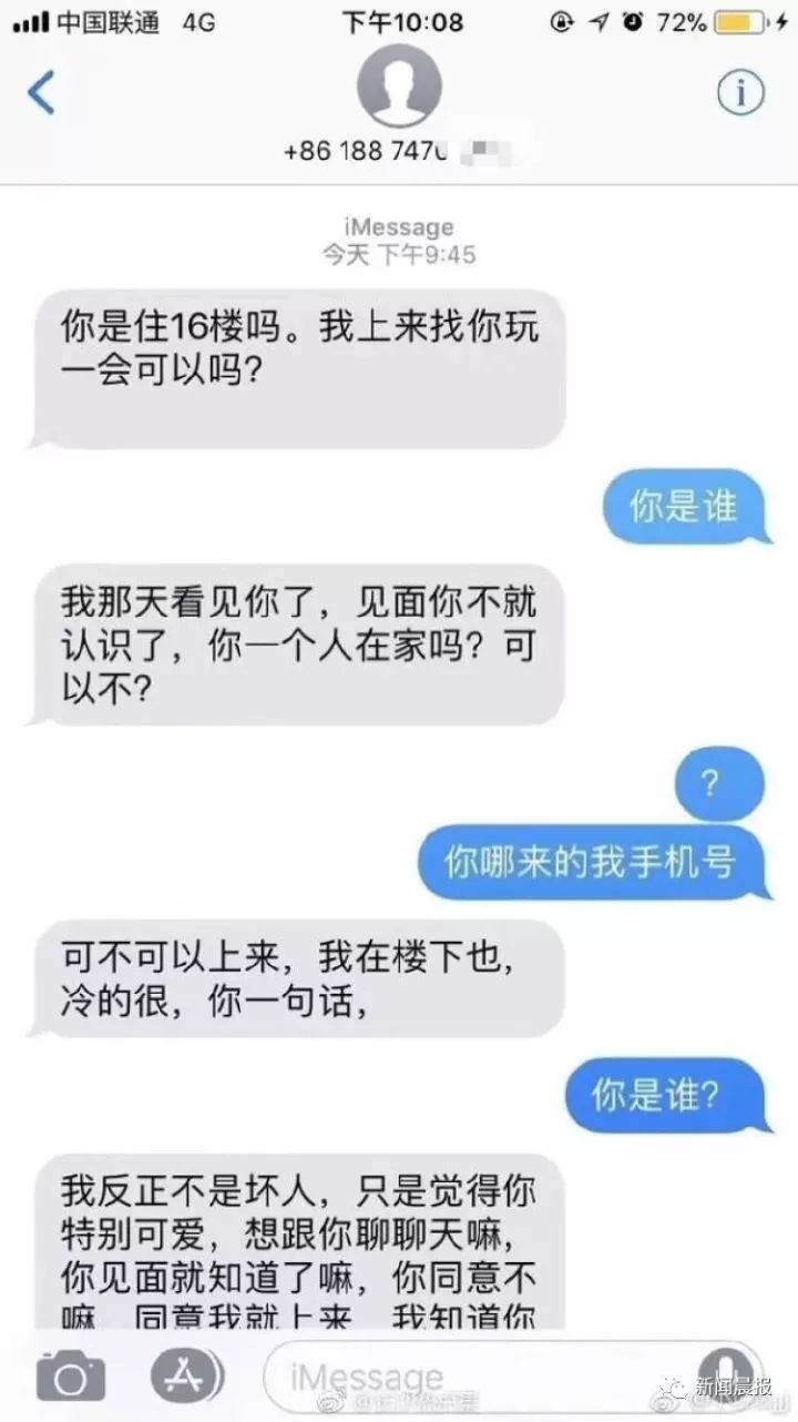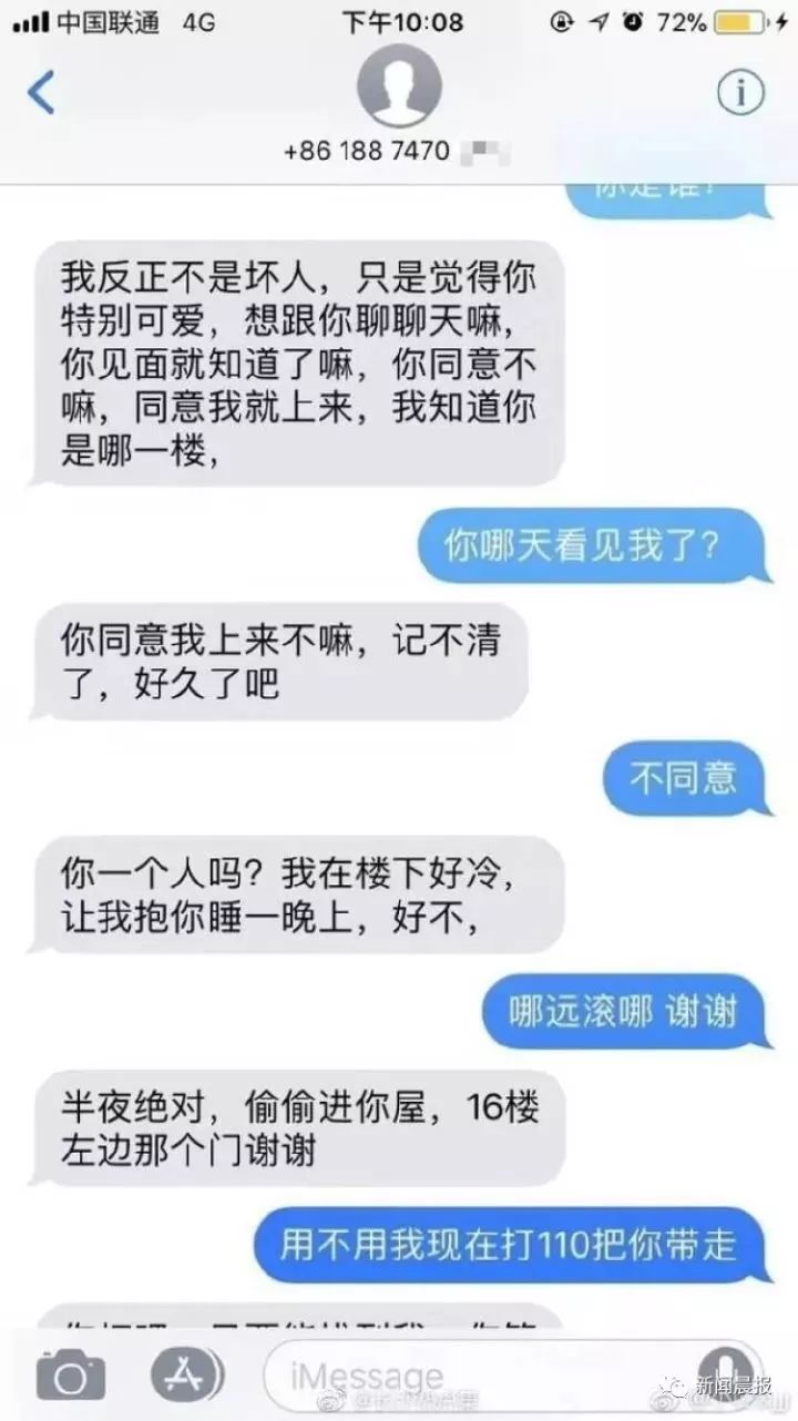 原标题:“我知道你没男朋友,让我抱你睡一晚” 姑娘深夜收到陌生人短信,不寒而栗!