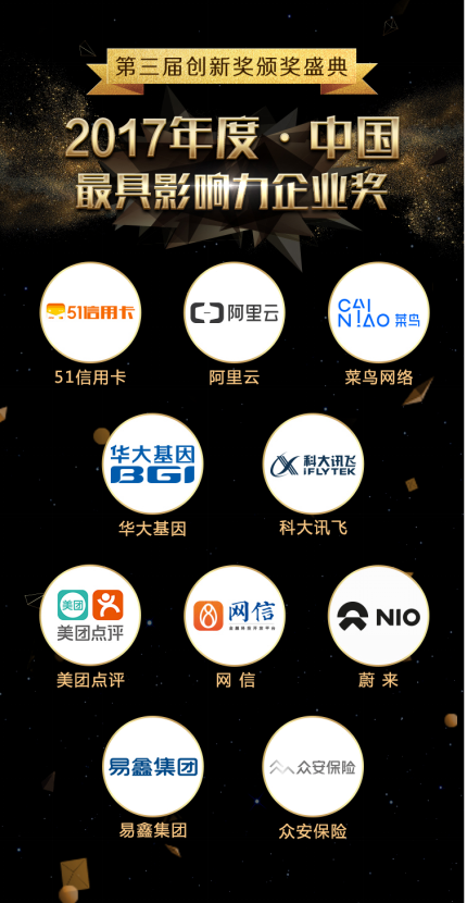 以下为2017年度中国第三届创新奖榜单(排名不分先后):