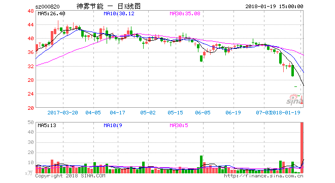 ▲神雾节能1月17日复牌后连遭两个跌停,1月19日仍大跌近9%