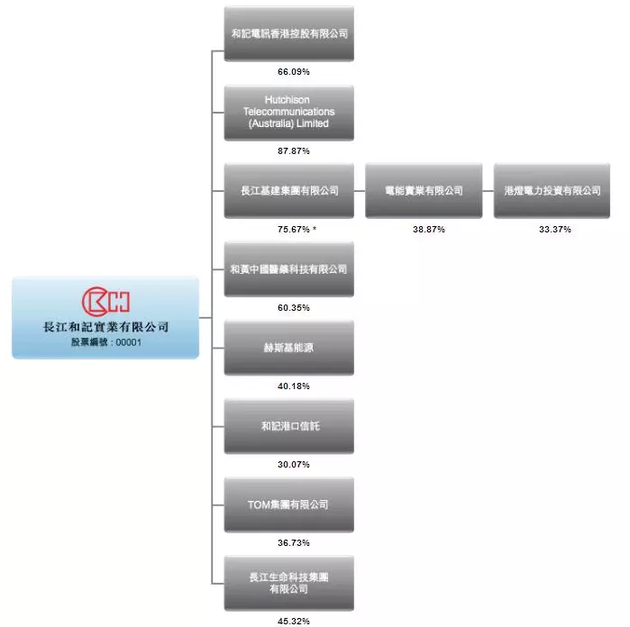 目前李嘉诚旗下有两家龙头公司,长江和记实业有限公司与长江实业地产有限公司。其中长江实业地产有限公司主要从事房地产业务,长江和记实业有限公司旗下则包括港口、零售、基建、能源、电讯等诸多业务。