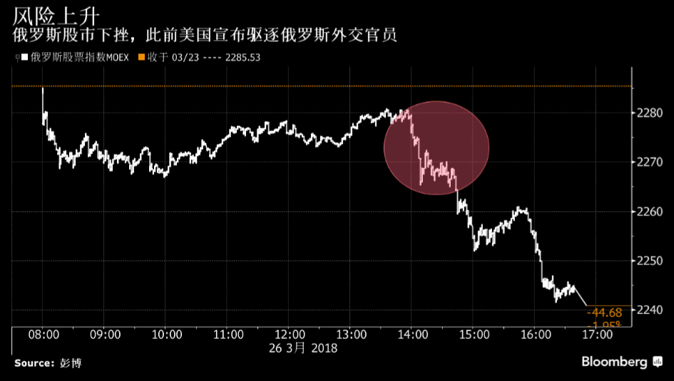 俄罗斯股市和债市双双重挫,此前美国和十多个欧洲国家宣布驱逐大批俄罗斯外交官,回应俄罗斯前间谍在英国被毒害的事件