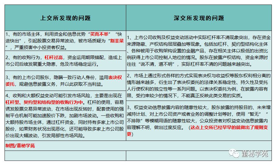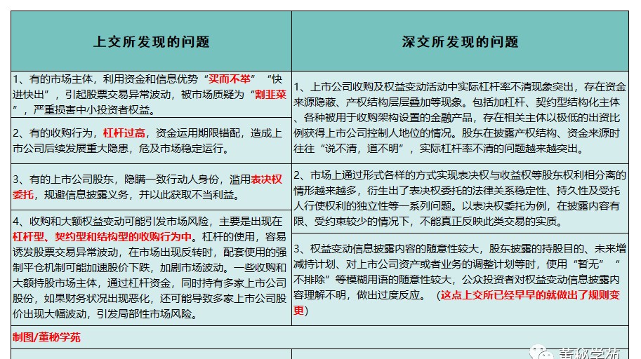设定新规肯定是为了应对新出现的问题或者说应对新的现象,首先我们来看看沪深交易所发现了哪些关于上市公司收购及股份权益变动信息披露出现的问题。