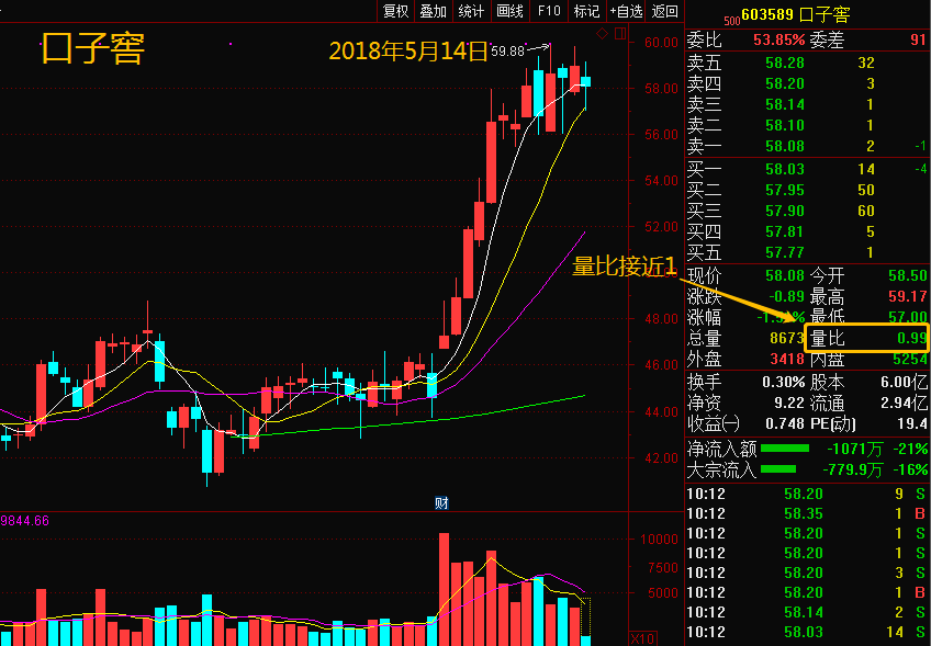 量比数值在1倍左右时,是一个临界点,也就是说近期成交量平衡,此时也是最容易发生变盘的时候,在盘中会有以下三种情况出现: