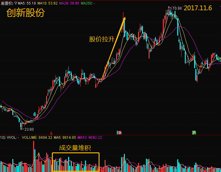 在K线图上,如果个股在盘整期的成交量逐渐堆积时,则说明近期有庄家资金介入,虽然成交量堆积股价不一定会马上上升,但后期拉升的可能性很大。这种情况下,投资者应耐心等待,当股价开始明显放量上升时买入。