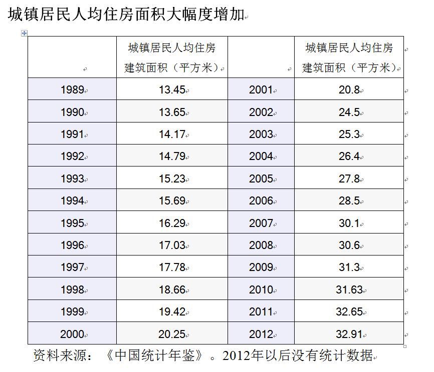 上表的国际比较中可以看出如扣除公共分摊的面积部分,中国城镇人均拥有的住房面积与国际水平相差极大。甚至不到发达国家的50%的水平。现有的人均住房面积的统计,并不能反映真实的市场情况和真实的住房现象,更不能反映人民生活的实际情况。