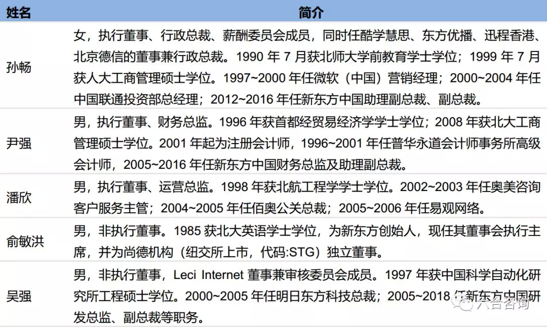 公司2005年成立,前身为新东方集团网校,控股股东为新东方集团,持有公司66.72%股权,实际控制人为新东方集团实际控制人俞敏洪,境内运营实体为北京迅程,北京迅程旗下拥有控股或参股公司8家,包括酷学慧思、东方优播、寓乐世界、职尚、翼欧、尚悦等。