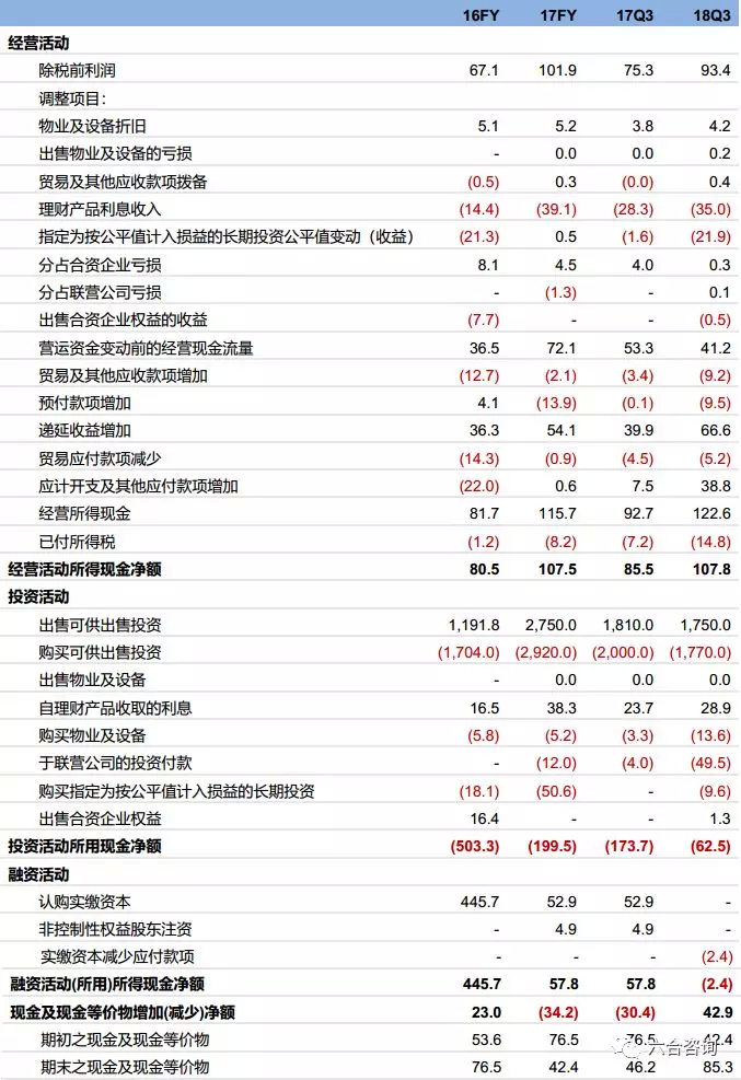 净利率:2016~2017财年、2018财年前9个月分别为17.8%、20.7%、16.6%。