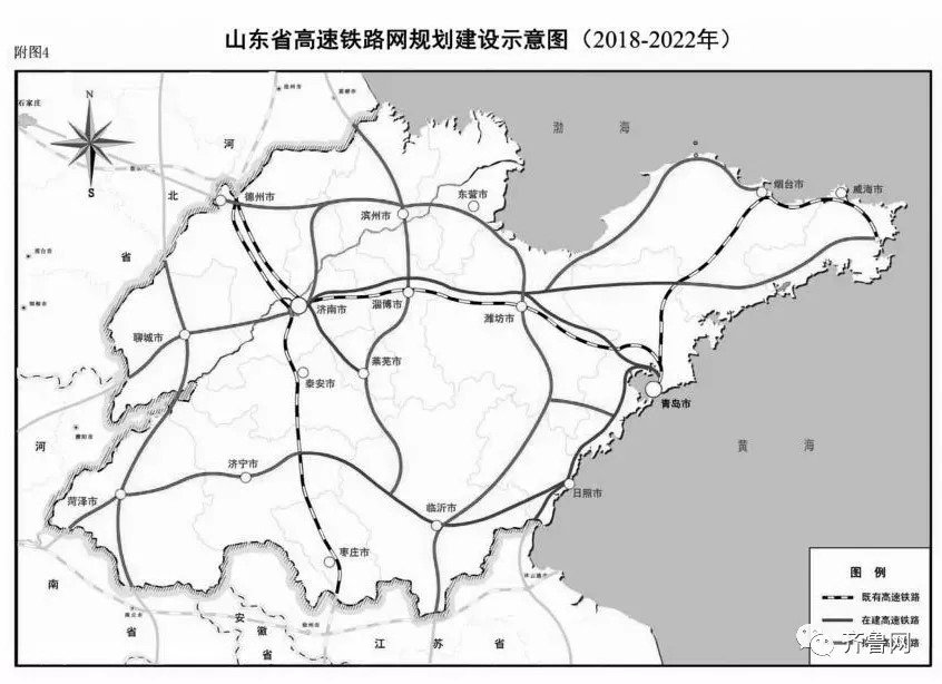 省内高铁通道:加快建设潍坊至莱西铁路、济南至莱芜铁路;重点推进济南至滨州、滨州至东营、潍坊至烟台、莱西至荣成、淄博至莱芜等铁路项目规划建设;规划研究滨州至淄博、莱芜至鲁南高铁、德州至商河、青岛西至京沪高铁二通道项目