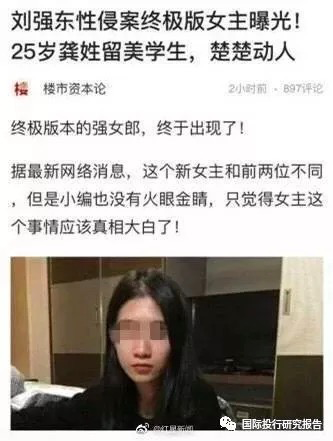 另一个方面,造谣、传播刘强东涉嫌性受害人照片,更是将张一鸣的价值观淋漓尽致的体现。9月7日,今日头条下属的、与娱乐和经济都无关的头条号楼市资本论推出了一篇关于刘强东性侵案终极版女主的文章。