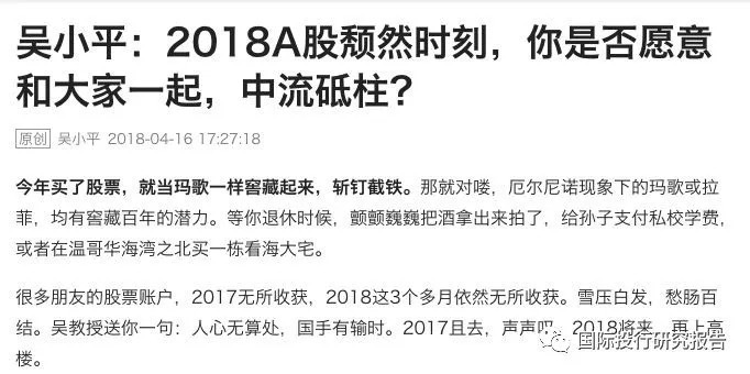 然而在4月16日,吴小平在股票咨询方面的发文称:一个大牛市要来了。