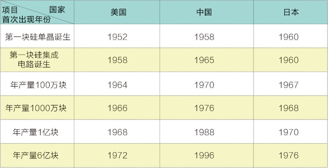 与之形成鮮明对比的是,中国台湾地区的“工研院”1975年向美国购买3英寸晶圆生产线,1977年即建成投产。1978年,韩国电子技术研究所(KIET)从美国购买3英寸晶圆生产线,次年投产。1980年,台湾地区的联华电子建立4英寸晶圆厂。