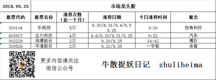 【以下为2018年9月26日《龙头点评:1个板块集体大跌1只妖股再度涨停 因为这2个消息》】