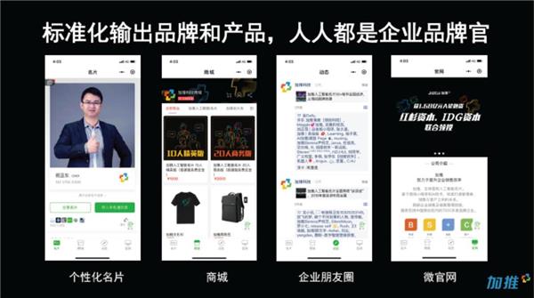 作为一家由技术驱动的科技公司,加推科技一直保持着极高的技术壁垒。产品上线以来,加推在助力企业销售和管理智能化、信息化上的探索取得多项突破。在智能化领域,加推积极推动企业销售数字化方向的探索,并重磅推出了“名片电商”、“分销”等创新性功能,同时推出针对个人创业者、泛家居行业等细分领域的解决方案,持续为各行业客户提供落地营销解决方案。