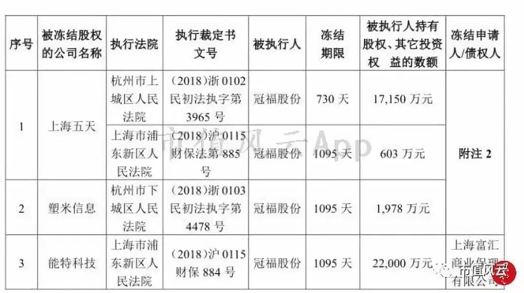 子公司股权被冻结情况如下,其核心子公司能特科技与上海塑米信息均在其列。