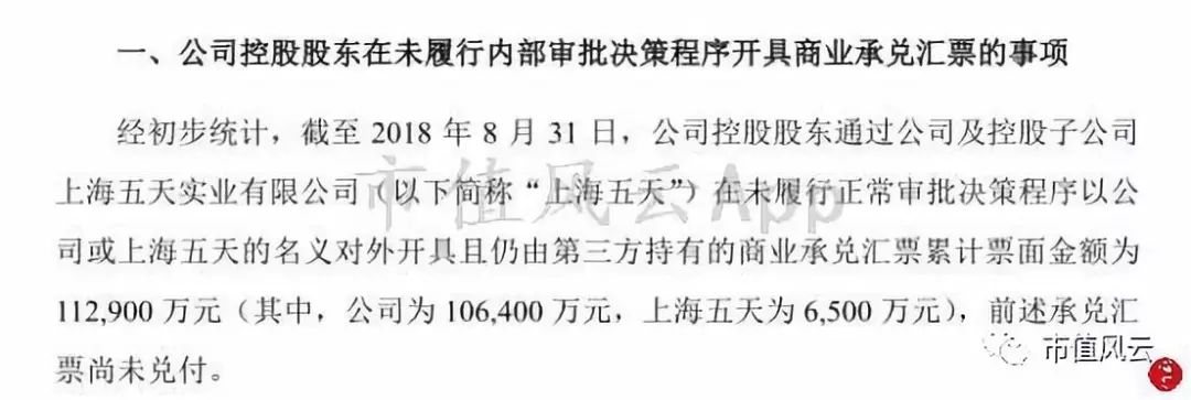 (1)公司控股股东在未履行内部审批决策程序开具商业承兑汇票