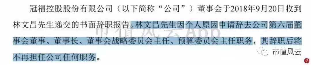 冠福控股在9月21日发布了董事长辞职的公告:
