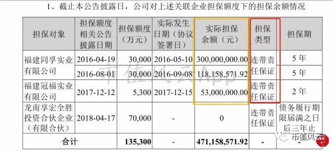 再看第二个坑:关联担保。由于控股股东的企业正常经营需要资金,所以冠福股份发善心为其担保借款。注意担保类型:连带责任保证。
