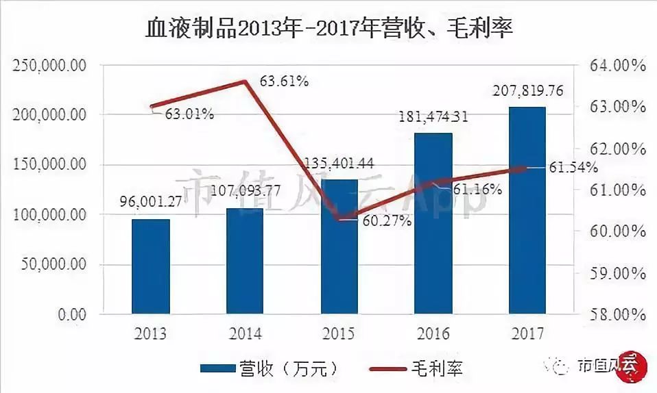 公司近五年血液制品的营收和毛利率情况如下图所示: