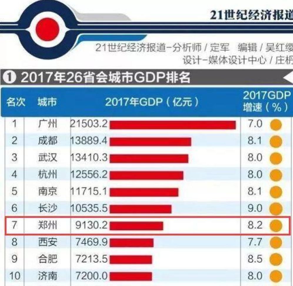 这么多年的努力,2017年全国各省会GDP排名郑州位列第七,也是北方省会中,GDP最高的城市。