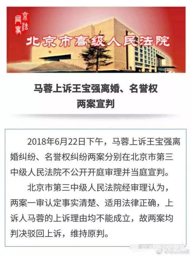 值得玩味的是,今年6月22日下午,争执近两年的王宝强诉马蓉离婚案、马蓉诉王宝强名誉侵权案终审,终审宣判驳回马蓉上诉请求,维持原判。终审判决无疑从法律上对马蓉出轨宋喆的消息盖棺定论,马蓉所要求的恢复名誉显然无法实现。