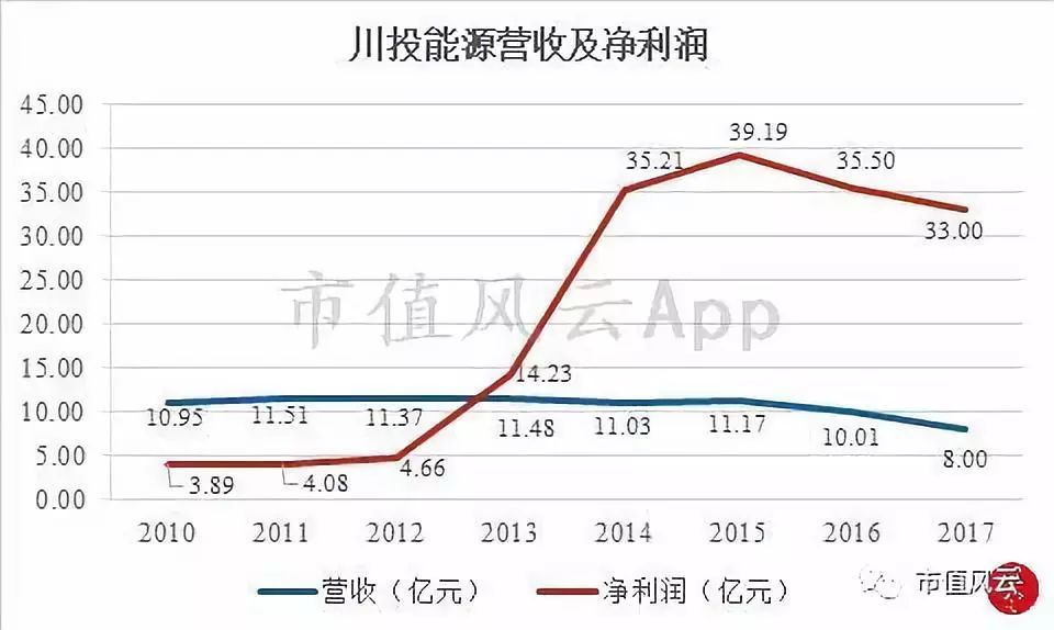 在2017年雅砻江水电营收及净利润同比都有所下降的情况下,反映在川投能源的投资收益上,也是同比出现下降,投资收益从35.18亿元下降至33.04亿元。