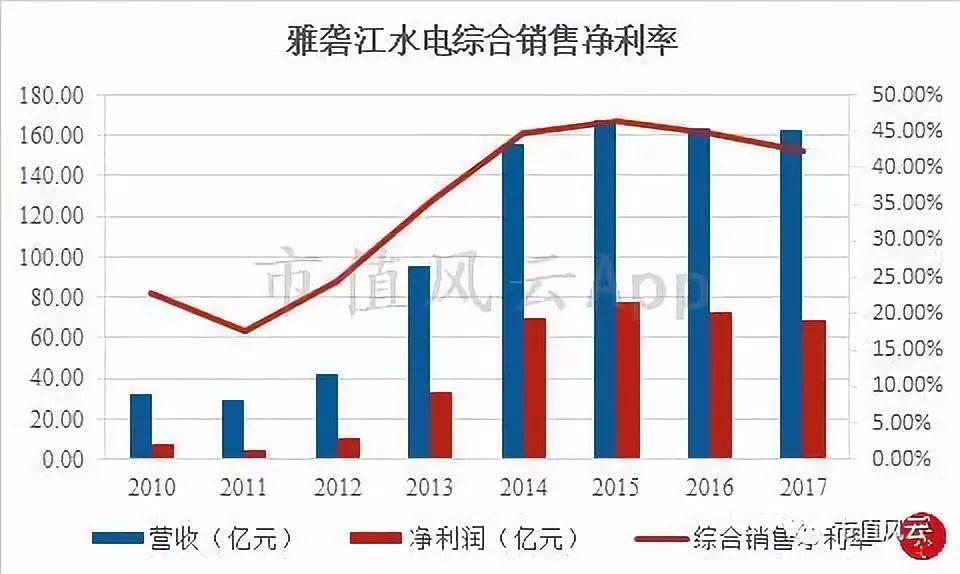 由于无法取得雅砻江水电各电站的营收、净利润数据,我们这里只粗略看雅砻江水电的综合销售净利率指标。