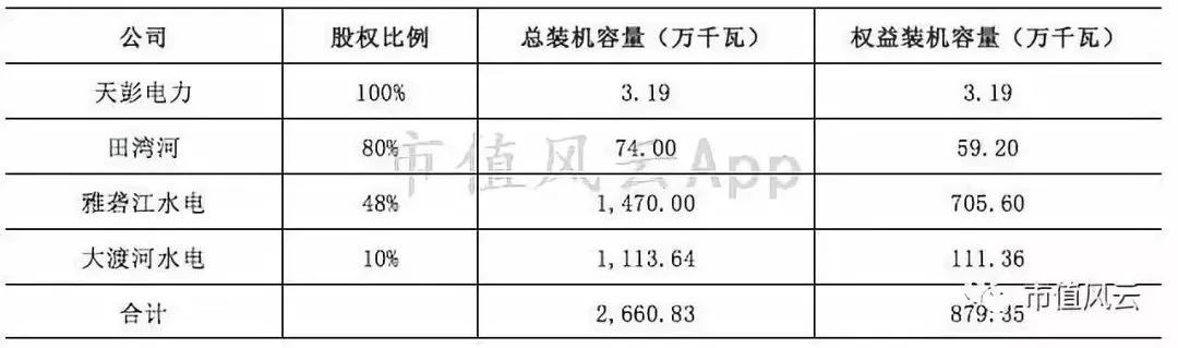 公司最主要的水电业务集中在这几个参控股公司中:雅砻江水电(48%)、田湾河(80%)、川投电力(100%)、天彭电力(直接95%+间接5%)、大渡河水电(10%,在可供出售金融资产按成本核算)。