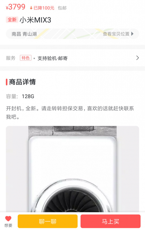 11月1日,小米MIX3将在线上线下同步开售,虽然离正式开售还有几天时间,但是在转转二手交易平台,已经有用户发出MIX3的转卖信息。