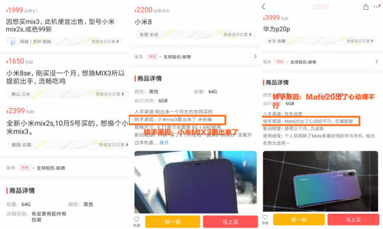 华为Mate20系列和小米MIX3上新,带动了消费者的换机需求。在转转二手交易平台,不少用户为了购买新手机,发布转卖旧手机的信息。
