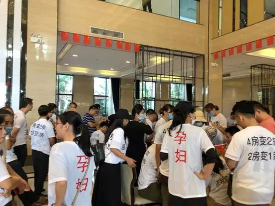穿着写有“孕妇”字样T恤的女士业主,她们的梦想被打落