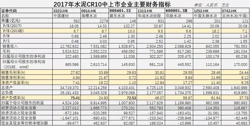 在财务及ROE角度进行优劣排序,从高到低依次是:海螺水泥、华润水泥、亚洲水泥、华新水泥、中国建材、中国天瑞水泥、冀东水泥。