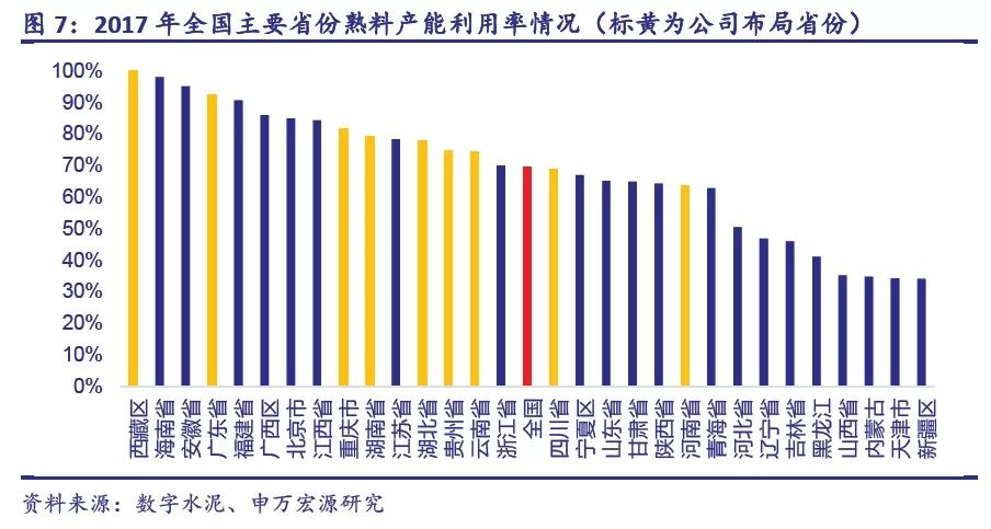 华新水泥熟料产能全部位于中南、西南区域。价格弹性一般,但由于中南、西南地区水泥价格从2017Q4开始涨,所以华新水泥2018Q3业绩同比增幅将于上半年保持一致。