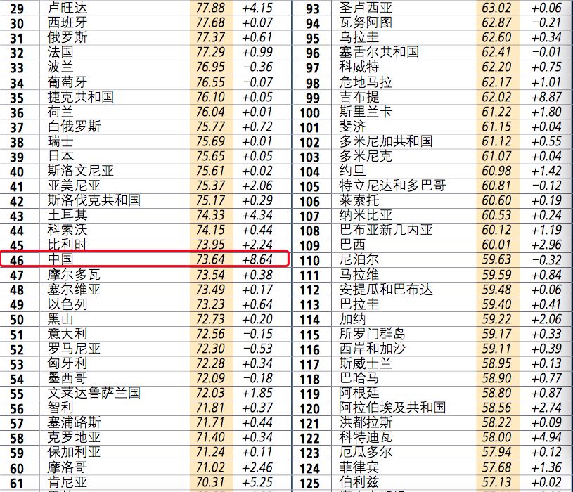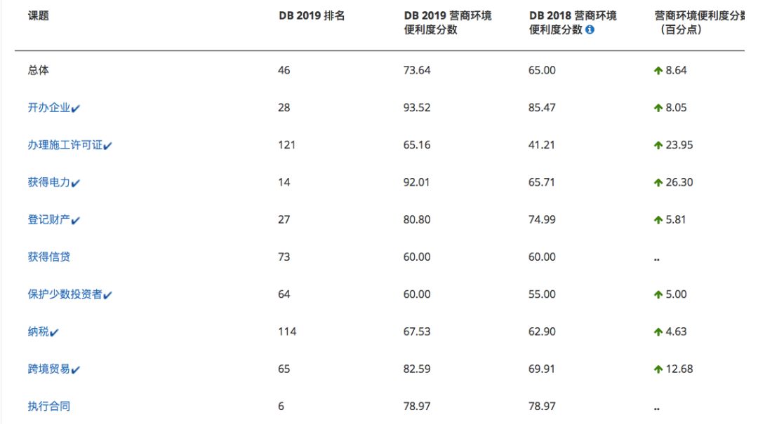 中国营商环境排名从上期的第78位跃升至第46位,首次进入前50。